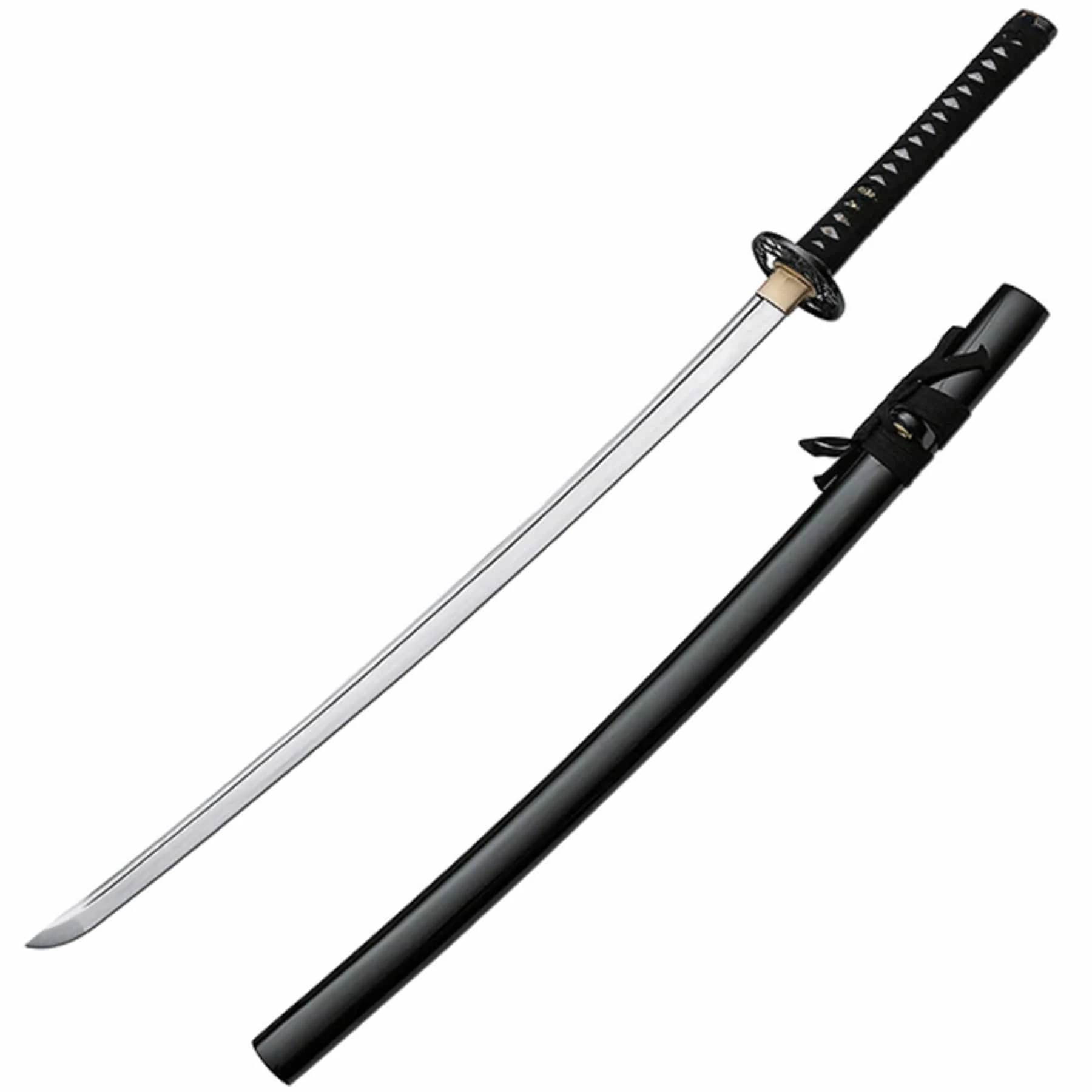 This functional sword is suitable not only for “Kata” (forms of exercise) or “Laito” (drawing exercises), but also for “Temeshigiri” (cutting tests). In order to perform cutting tests, a very high quality, sharp and edge retaining blade is needed. The Akito blade is made of clay hardened 1045 carbon steel with real hamon (temper line). The overall structure is very robust, in order to avoid injury. The blade is continuous almost to the end of the handle and is secured by two mekugis. The functional sword comes with a beautifully lacquered wooden scabbard, together with traditional eyes (Kurigata and Shito-Dome).