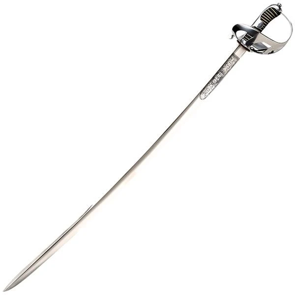 The Cold Steel 1852 Prussian Saber Sword has a pipe back (spine) that ran down its length to reinforce the spear point. It had a remarkably effective, pierced basket guard and a sharkskin wrapped grip. It is a light, handy saber that cut efficiently and was diabolical in the thrust because of the added stiffness of its pipe back cross section. This sword has a fully sharpened edge and the battle-ready replica mimics the original nearly to perfection. Everything is there; including the pipe-backed blade, reinforced point and the pierced steel basket guard. Even the all steel scabbard has been faithfully duplicated.