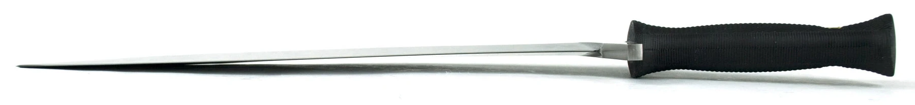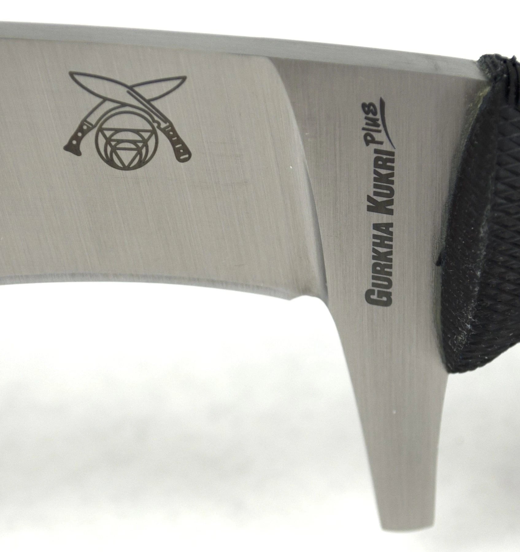 The Gurkha Kukri Plus features a 12-inch blade made of high-quality SK5 high carbon steel with a narrower point for easier piercing. The Kraton handle offers a secure grip that absorbs the hardest blows.