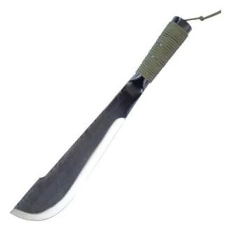 Blade Material: 1075 High Carbon SteelBlade Finish: NaturalHandle: Wrapped with ParacordSheath: Handcrafted Welted Leather