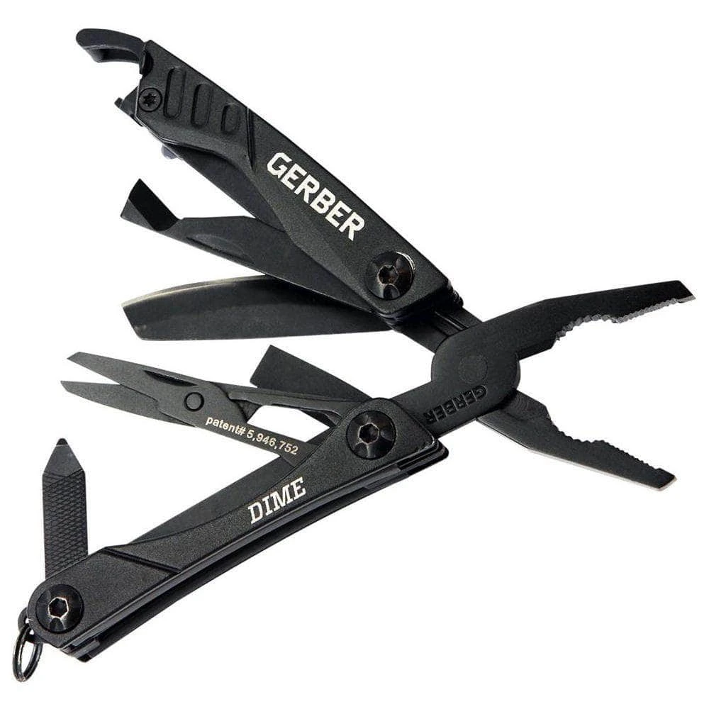 DimeBlack30-000469We took the standard keychain multi-tool and made it better. In addition to stainless steel pliers, wire cutters, a fine edge blade, spring-loaded scissors, flathead screwdriver, crosshead driver, tweezers and file, the Dime includes a unique blade designed to safely cut and score plastic packaging and a bottle opener that is exposed even when the tool is closed. Compact and lightweight, the Dime is the most valuable change you’ll find in your pocket.