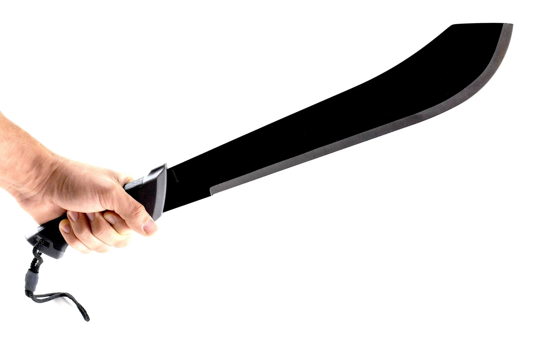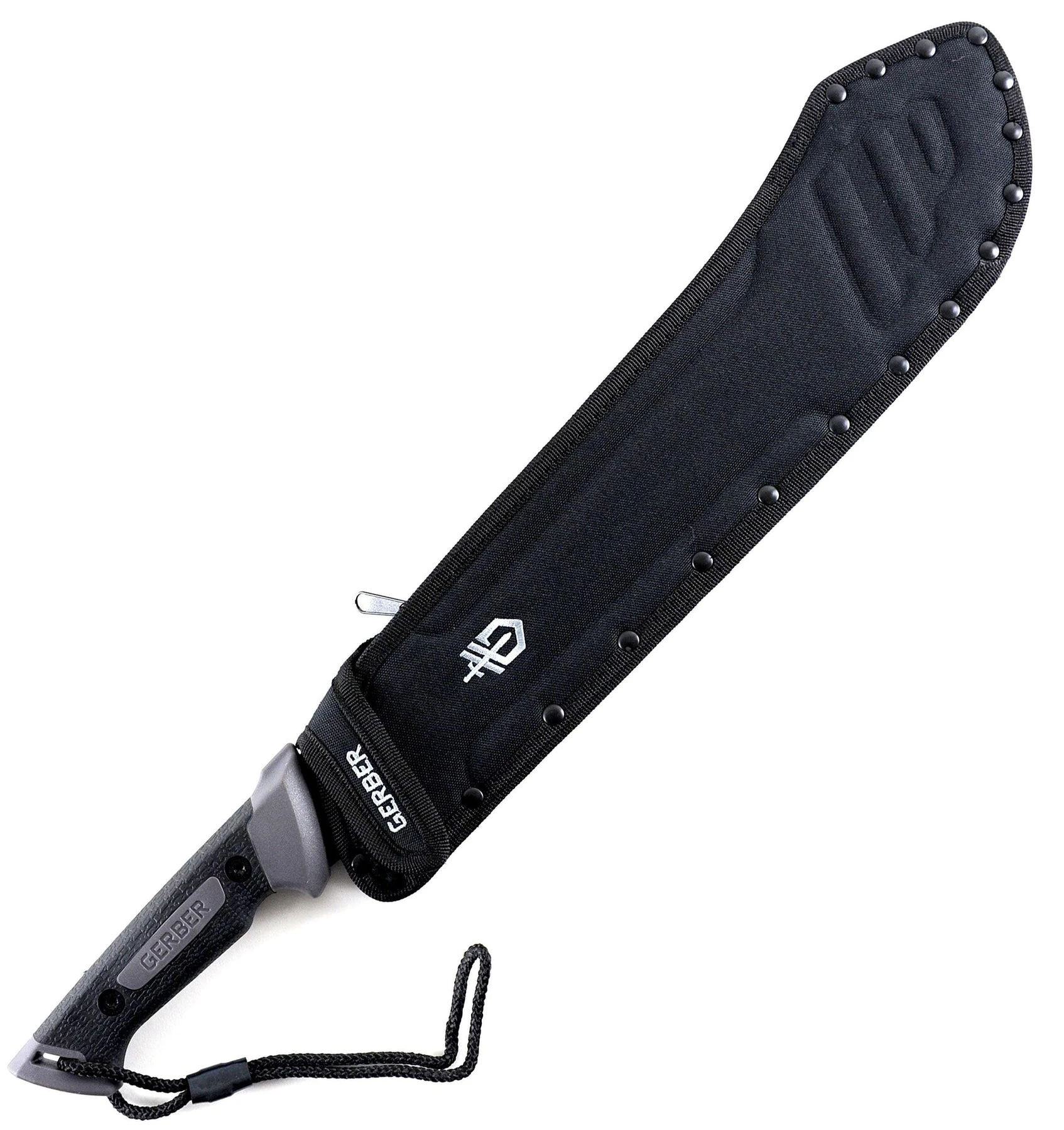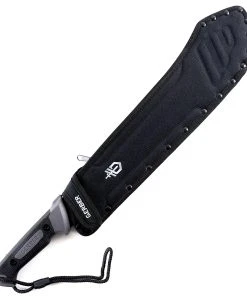 Based on the famous Filipino cutting tool, Gerber’s Gator Bolo Machete is a real beast of a machete. Its “fat” end works to give you serious forward momentum while swinging the blade so that you can cut heavy vegetation or slice coconuts and melons with ease. You may not have jungle brush to clear in your backyard, but this machete works just as well in less tropical conditions. Made of 1055 carbon steel with a full-tang construction, this machete can withstand heavy impacts with ease, making it perfect for chopping trees or firewood as well. Its ergonomic Gator Grip handle ensures that hot and humid conditions won’t slow you down. Includes a nylon sheath featuring a belt loop and d-loop for easy carrying.