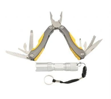 ~ Multi-tool: Pliers, knife, multiple screwdrivers, can openers, file, saw