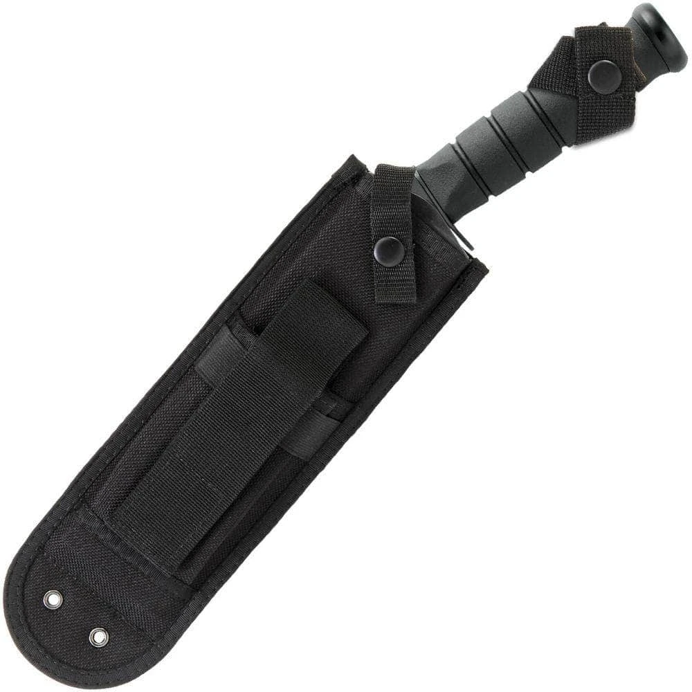 This heavy-duty chopper gets it’s shape from it’s older sibling, the Kukri Machete. At about 80% the size of the larger version, the Combat Kukri performs just as well at clearing brush and small tree limbs. Its smaller profile makes it a little easier for toting around – at just shy of a pound, it’s a more appropriately sized tool for combat carry as well. MOLLE compatible heavy-duty polyester sheath included.