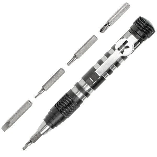 It includes five key bits for adjusting all your Kershaws: T-6, T-8, and T-10 for most Kershaws, plus the slotted and Phillips screwdriver bits for the Kershaw-Emersons. A magnetic bit driver tip makes it easy to change bits.