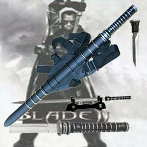 Blade Daywalker Sword AND Scabbard. 35″ Overall Sword Length, 440 Stainless Steel Blade, Hidden Dagger included in the handle of the Sword. Wooden Stand.is not includes Scabbard overall length 28″, Black composite construction with imitation leather covering, metal fittings, adjustable nylon straps.