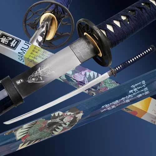 Limied edition Collector Samurai Katana. Excellent quality. Blade is 440 Stainless Steel with picture of Samurai etched on it. Scabbard has design imprinted and also includeds cloth pouch with picture imprint.