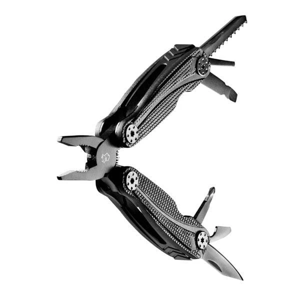 Features: Needle Nose Plyers, Saw, Plain Blade, Bottle Opener, Philips & Flat Head Drivers, Friction Lock