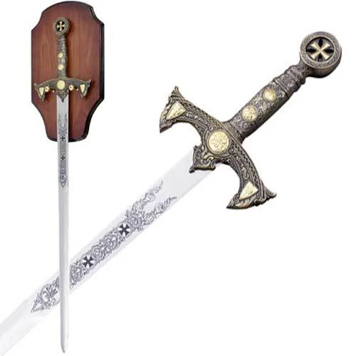 Knight’s Templar sword (47″ in overall length) comes with wood display plaque.