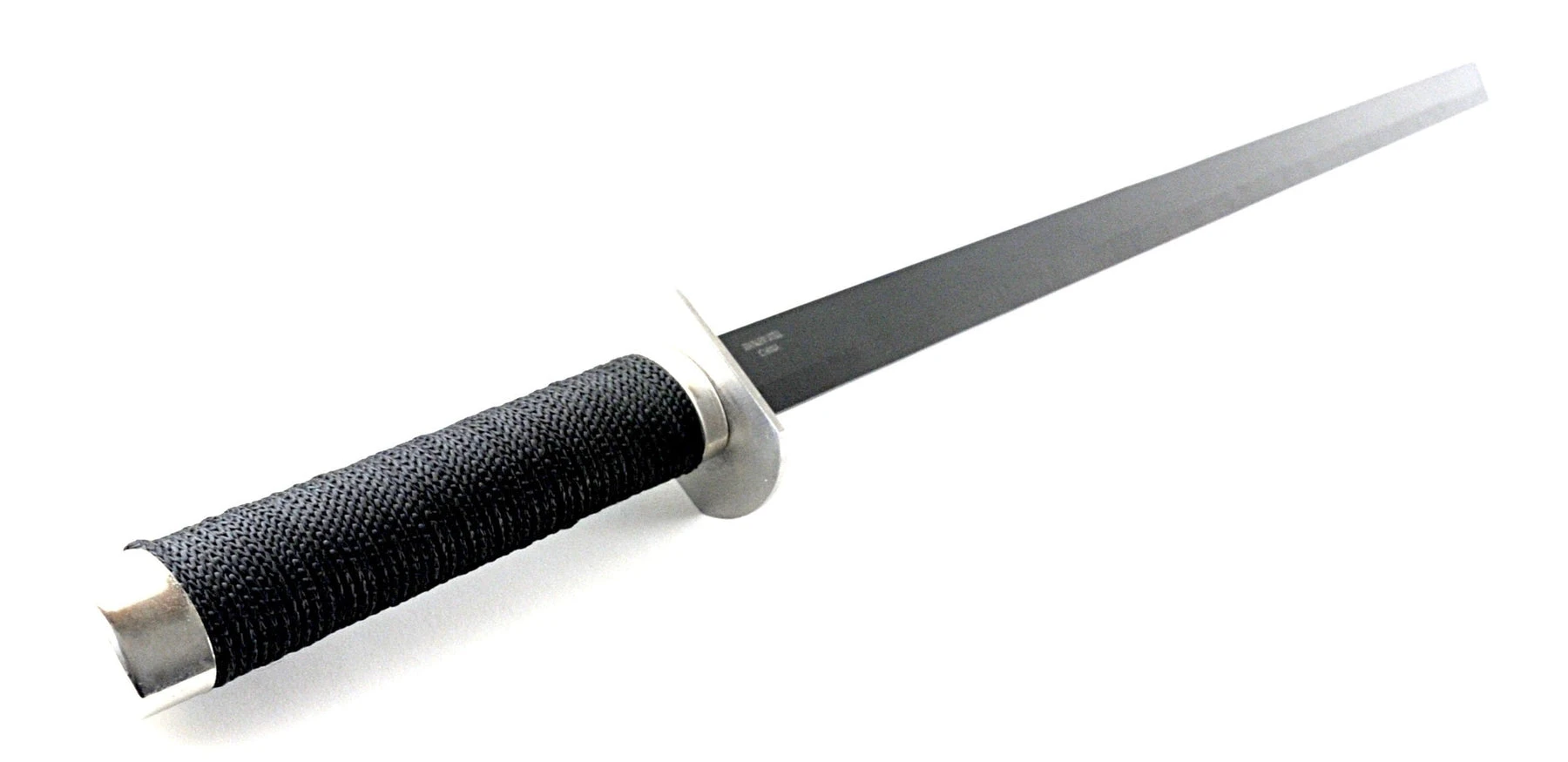 No true ninja uses just one sword. Historical ninjas actually had many blades on their bodies: daggers, throwing knives, short swords, and makeshift tools. You can round out your ninja gear with this excellent Ninja Strike Force twin sword set. Their black stainless steel blades are perfect for quick slashing, and they’ll make an intimidating impression when you take them out of their included back sheath. These knives also include the tactical advantage of polished steel guards, which will not only protect your fingers — they’ll look great doing it.