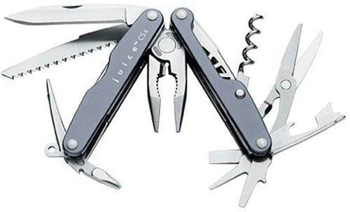 The Juice CS4 from Leatherman is packed with excitement. It comes with pliers, wire cutters and four screwdrivers, as well as a convenient saw and awl. Serrated scissors are extremely useful and easily accessible. Don’t forget the handy corkscrew–perfect for an emergency picnic. A lanyard attachment ensures that your CS4 is always nearby and at the ready. Gray anodized handles.
