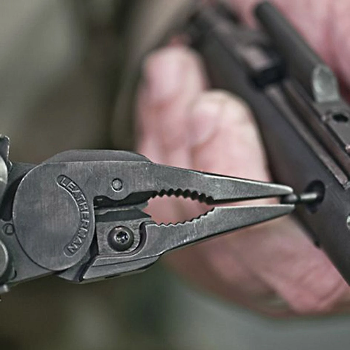 The Leatherman MUT is the first multi-tool that functions as both a tactical and practical tool for military, LE, or civilian shooters. The MUT features multiple areas on the tool threaded for cleaning rods and brushes and all the screwdriver bits are sized for standard military and civilian sighting adjustment work. Also built into the design of the tool is the flexibility to replace the most commonly used parts on the spot, using a simple Torx #8, keeping down-time to a minimum. With all this, a MOLLE sheath and scope adjustment wrench included, the Leatherman MUT may very well be the most efficient and useful piece in your kit.