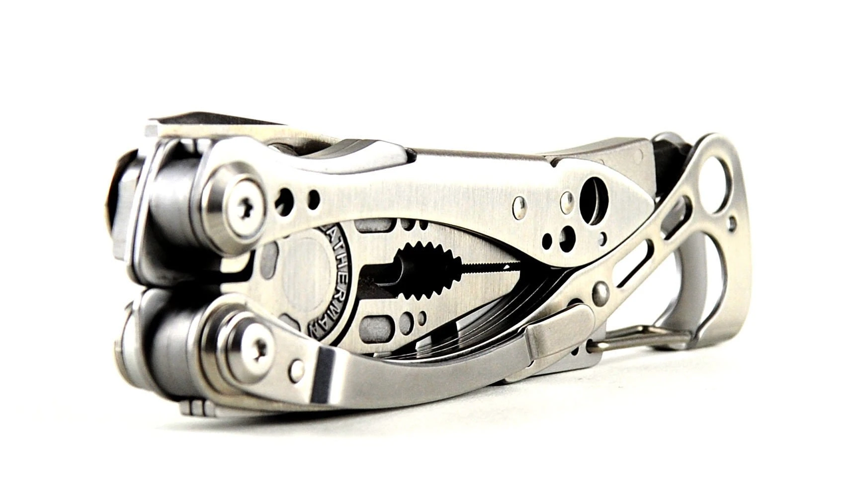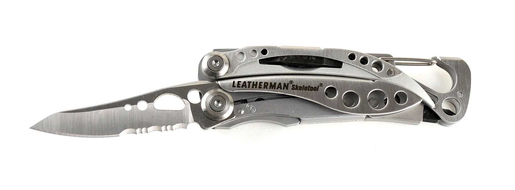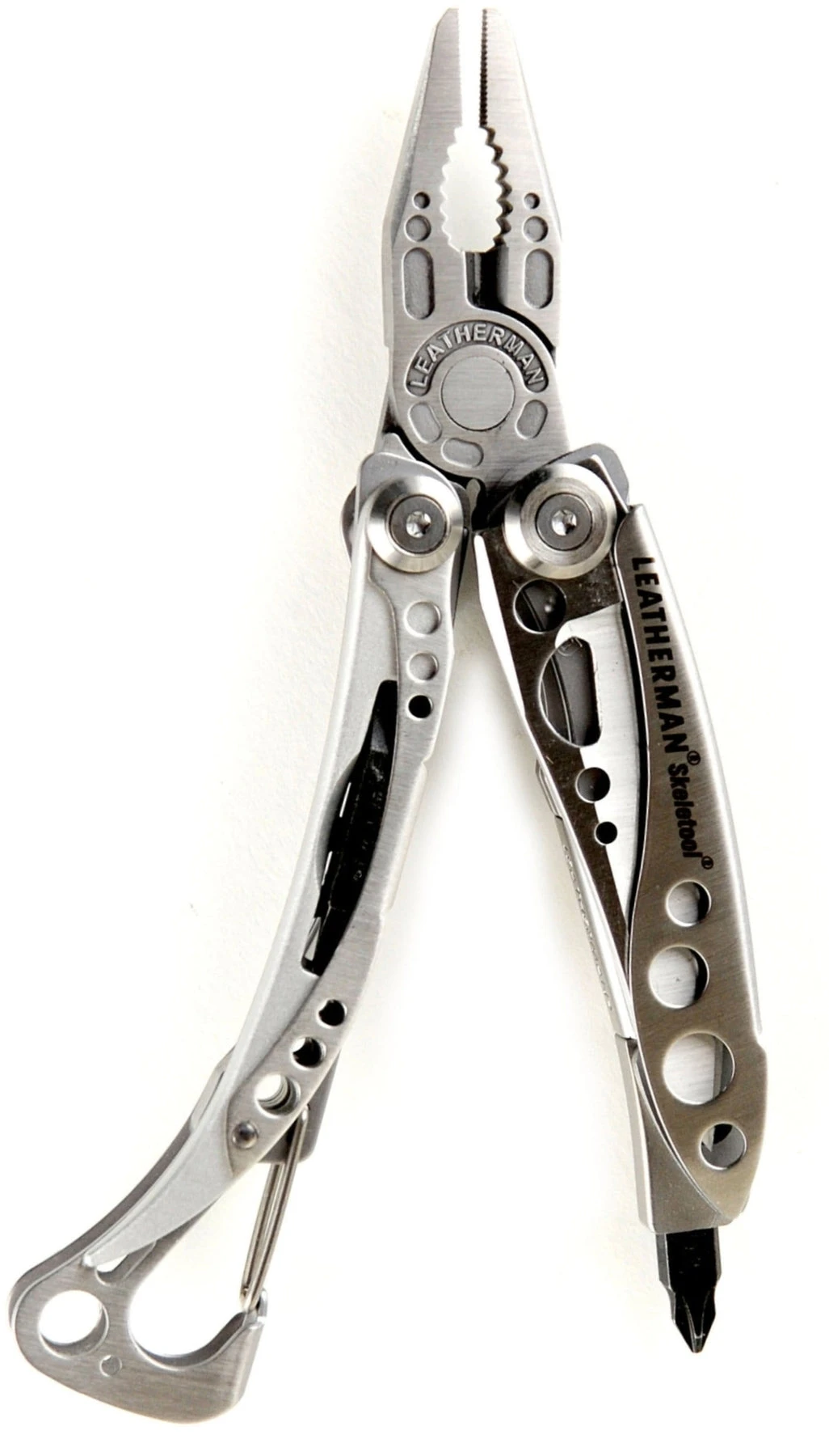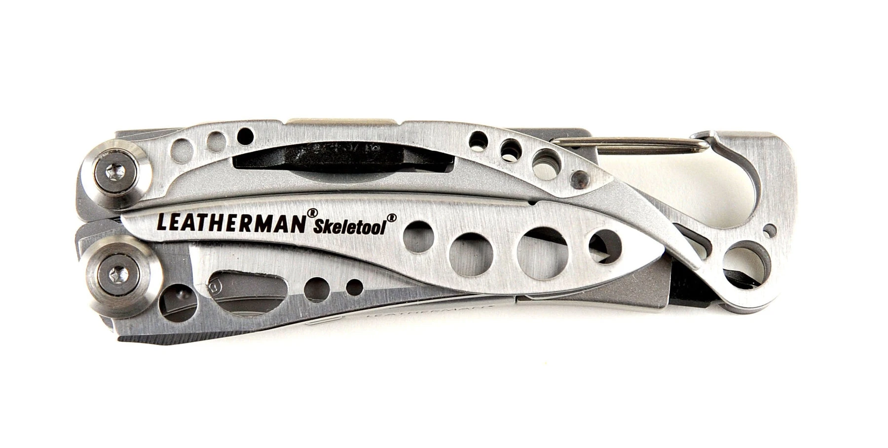 The Leatherman Skeletool is the bare essence of what a multi-tool can be. Barely clocking in at 5 oz., the Skeletool is the RoboCop of tools, easily outpacing the competition in developing a unique full-function multi-tool that simultaneously features an outside-knife construction for the added functionality of one-handed blade access. An integrated bit-driver fitting option makes it possible to customize the Skeletool for nearly any job. A modern marvel of ingenious engineering, the Leatherman Skeletool is made with 6016-T6 aluminum with carbon-fiber handle scaling and comes with a tungsten DLC stratch-resistant coating, making it one of the coolest multi-tools available on the market today. Features a pair of needlenose pliers, regular pliers, wire and hard-wire cutters, a 420HC combo locking blade, an integrated carabiner clip and bottle opener, and a large bit driver. Comes with a 25-year warranty.