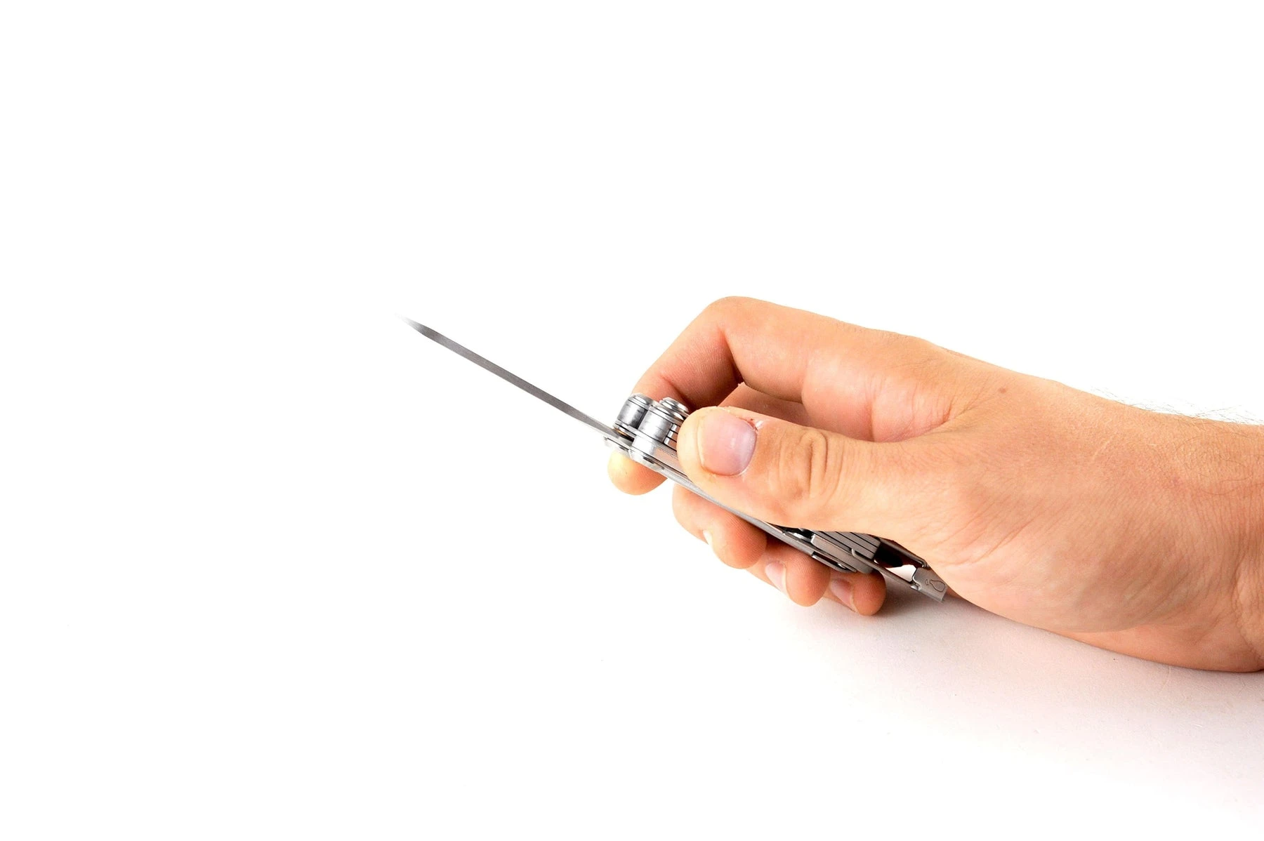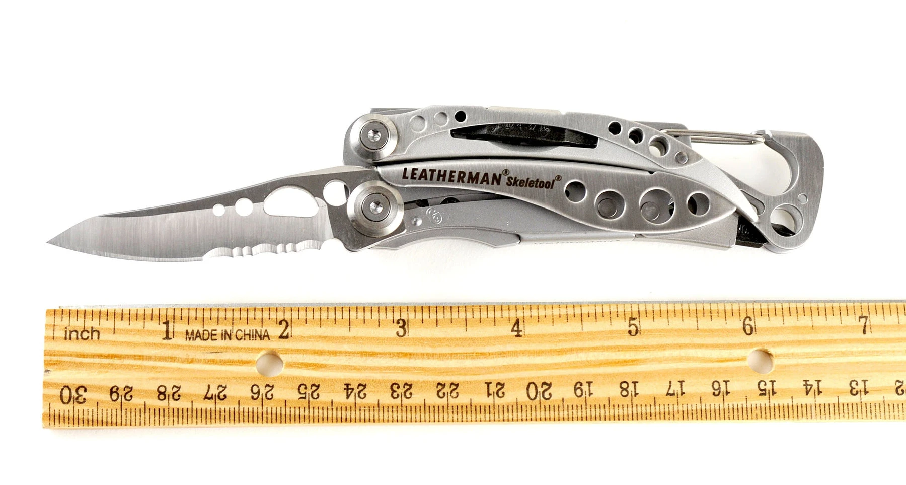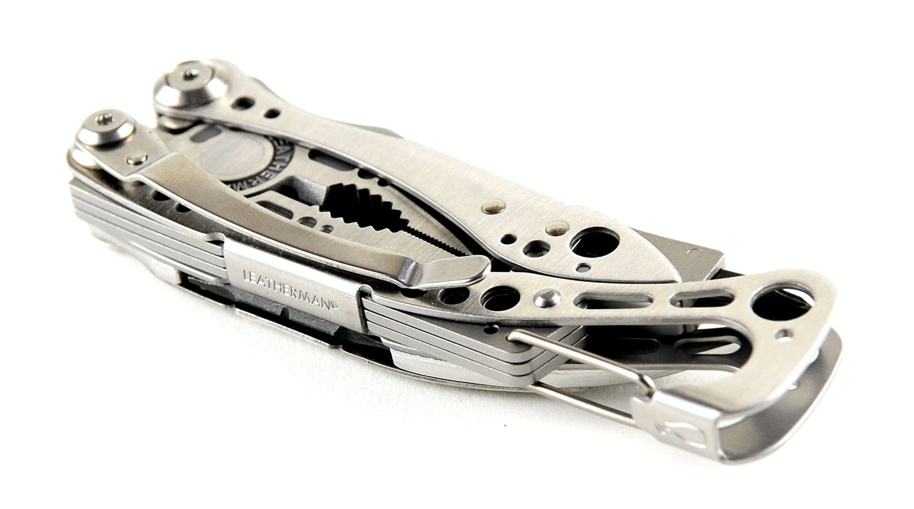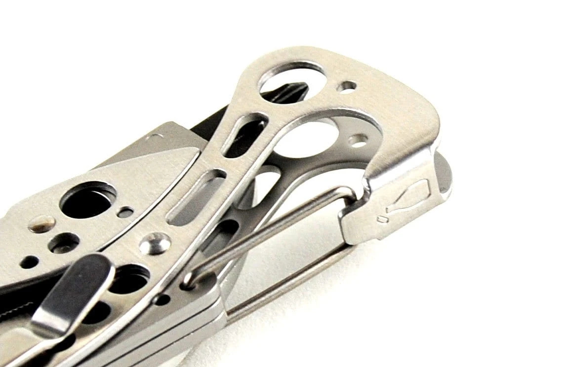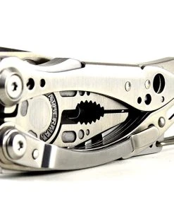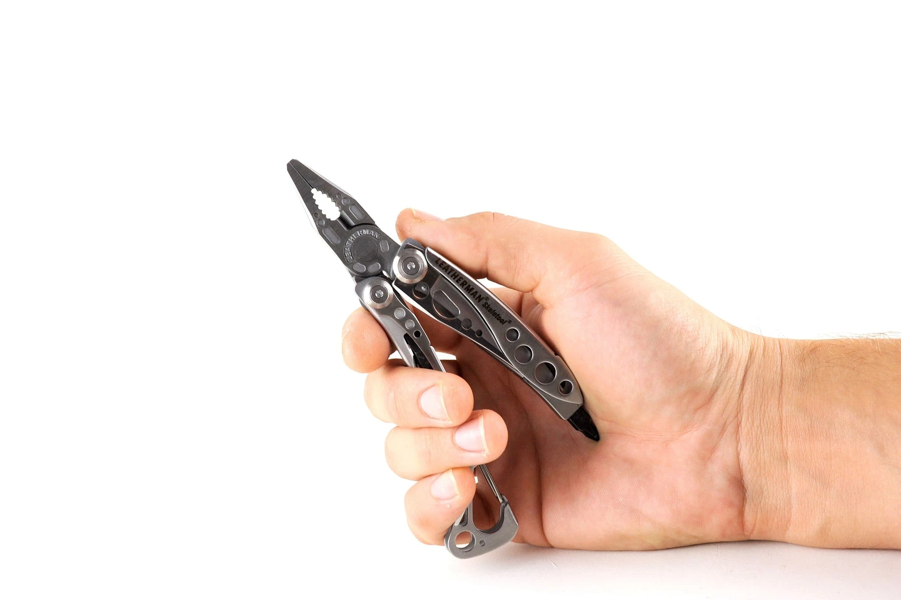 The Leatherman Skeletool is the bare essence of what a multi-tool can be. Barely clocking in at 5 oz., the Skeletool is the RoboCop of tools, easily outpacing the competition in developing a unique full-function multi-tool that simultaneously features an outside-knife construction for the added functionality of one-handed blade access. An integrated bit-driver fitting option makes it possible to customize the Skeletool for nearly any job. A modern marvel of ingenious engineering, the Leatherman Skeletool is made with 6016-T6 aluminum with carbon-fiber handle scaling and comes with a tungsten DLC stratch-resistant coating, making it one of the coolest multi-tools available on the market today. Features a pair of needlenose pliers, regular pliers, wire and hard-wire cutters, a 420HC combo locking blade, an integrated carabiner clip and bottle opener, and a large bit driver. Comes with a 25-year warranty.
