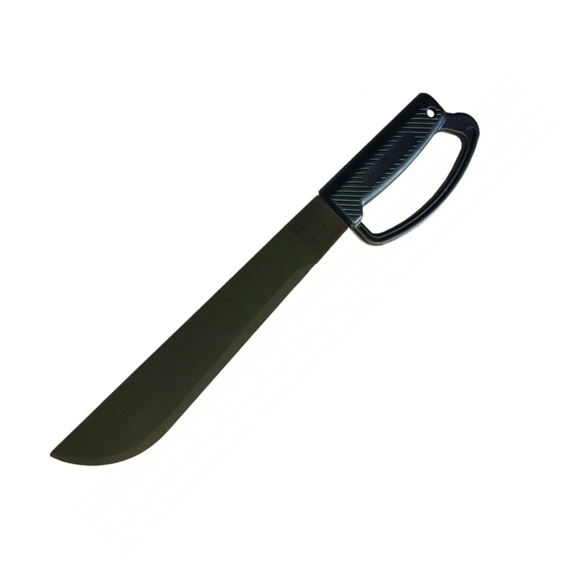 This machete features 1095 carbon steel, black oxide finish, full tang construction and .125″ thick blades.