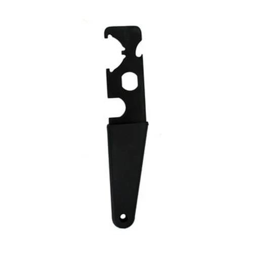 Constructed of heat treated steel with a parkerized finish, this multi-tool combines a castle nut wrench, receiver extension removal wrench, A1/A2 Flash Suppressor wrench, and a bottle opener.