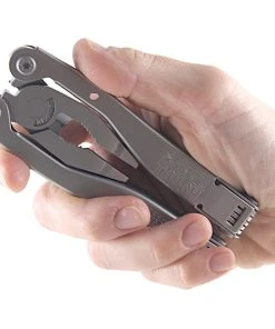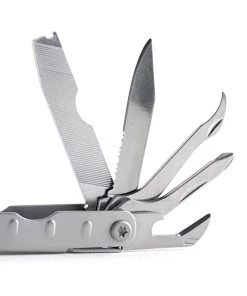 Whenever you carry this Schrade Tough Tool, it’s like having an entire toolbox at your disposal. The 100% stainless steel construction features 21 useful functions and implements, including various screwdrivers, an awl, pliers, a saw blade, a can opener and much more.