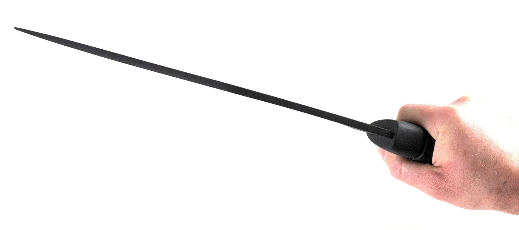 The curved blade offers superior chopping capabilities needed to tear through vines and briars with ease, while the comfortable rubber handle surrounds the full tang for control and durability. Protrusions on the handle keep the hand from sliding onto the blade or off the back when wielding the large machete.