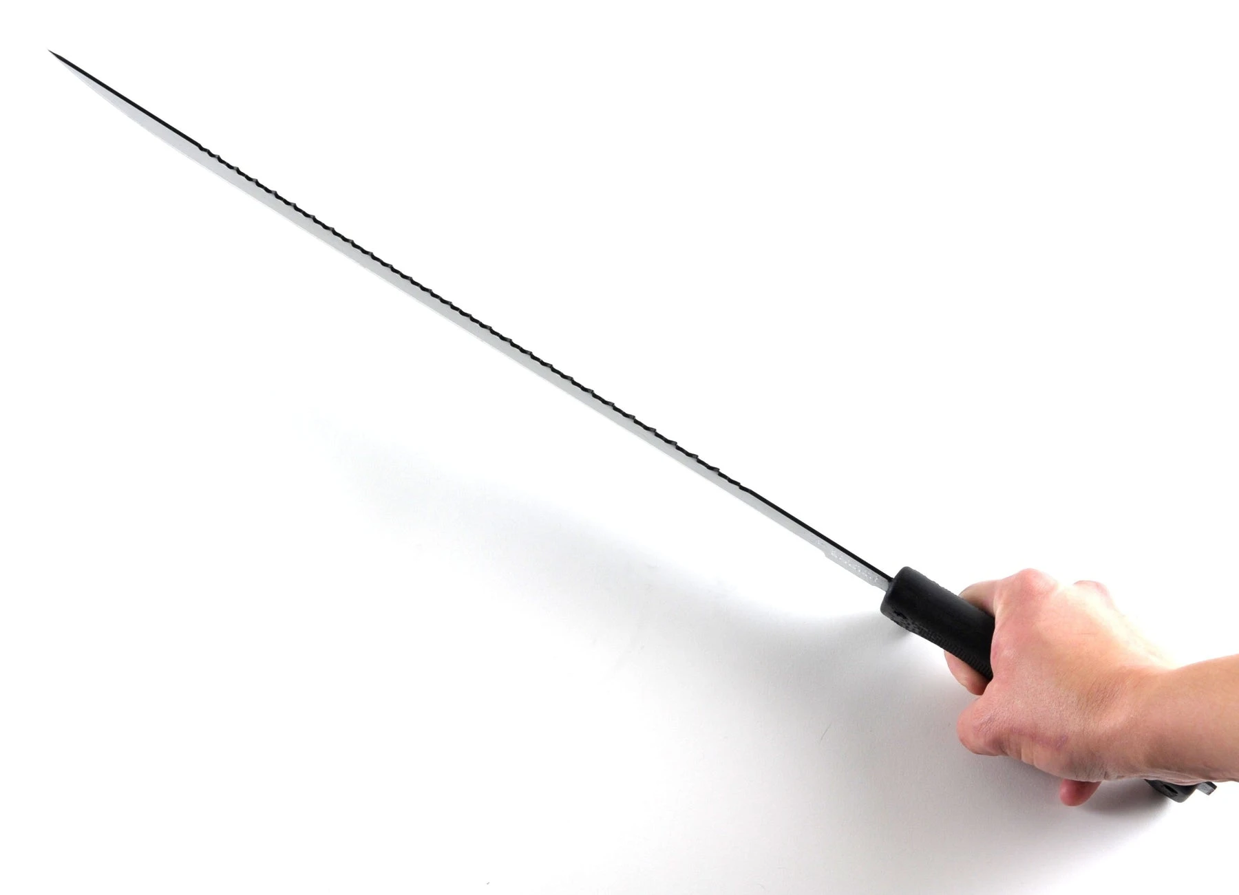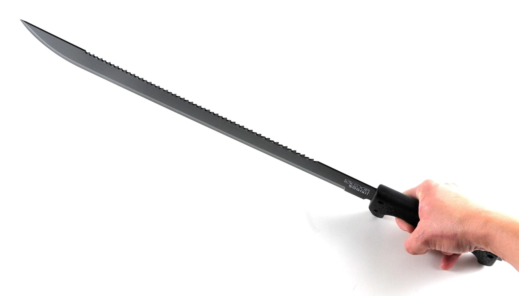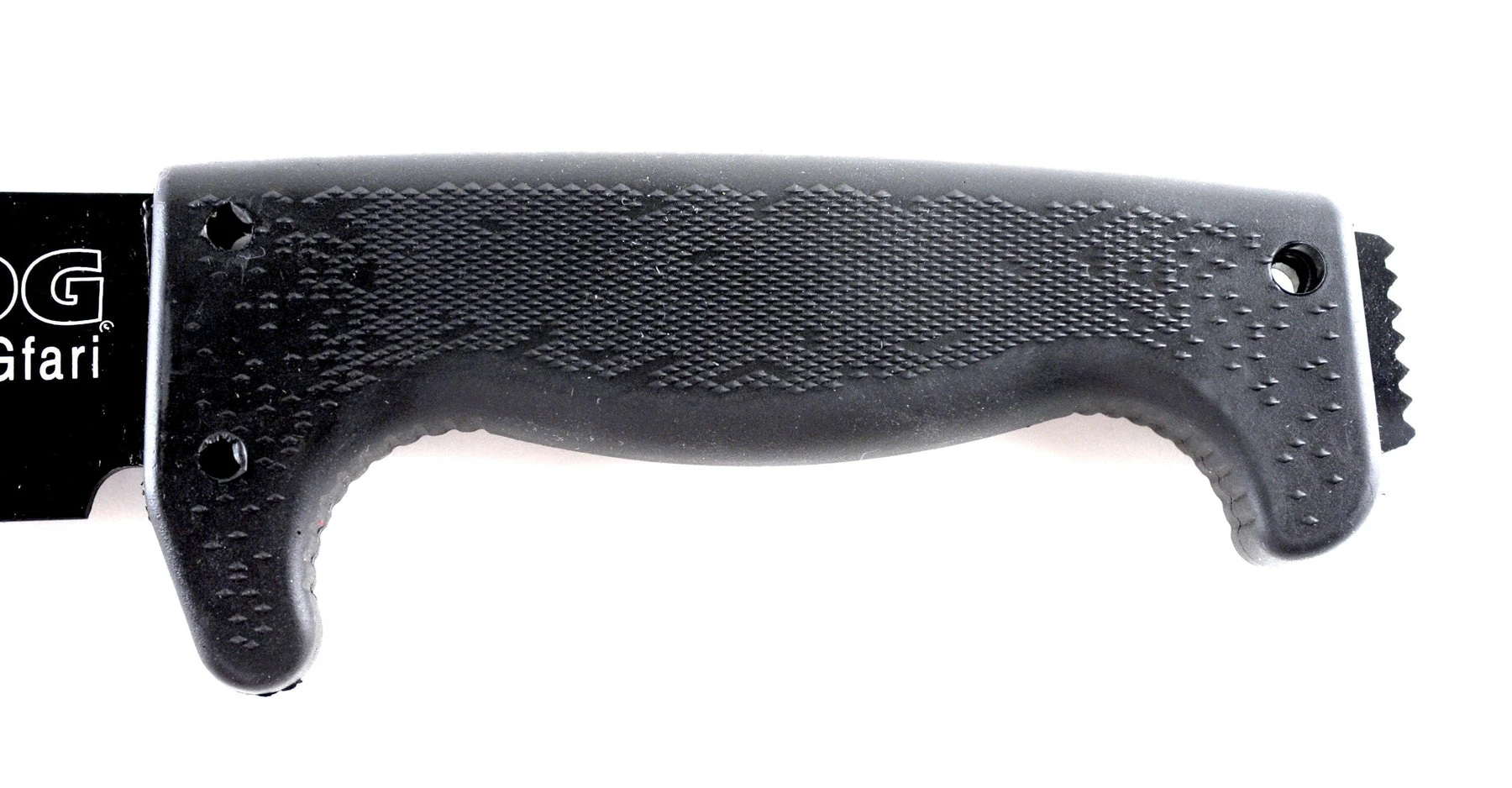Bushwhack anything, anywhere, with this 18-inch machete from SOG. This heavy-duty wilderness machete can be used for blazing trails, chopping wood, hunting, preparing food, harvesting crops or even self-defense from wild animals. At only 15.7-ounces, this top-quality machete is easy to carry and swing; it also features a working saw on the back of the blades to ensure ultimate cutting performance and a high-quality sheath for convenience.