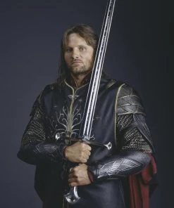 In the New Line Cinema film, “The Return of the King”, Anduril was reforged from the Shards of Narsil for Aragorn by elvensmiths in Rivendell. Elrond said of the legendary blade, “The man who can wield the power of this sword can summon to him an army more deadly than any that walk this earth.” The inscription down the length of the blade on both sides is in the Tolkien language of Quenya, written in the runes of Eregion, that say “Nny’ Andril in Narsil imacil Elendilo. Lercuvanten im li Mordr’o”. This translates to “I am Andril who was Narsil, the sword of Elendil. Let the thralls of Mordor flee me.” The blade inscription features runes framed by stylized symbols of the Sun and the Moon, which represent An‡rion and Isildur, the sons of Elendil, and seven symbolic stars that represent Elendil, who died wielding Narsil™ in battle against Sauron. Inscribed on the pommel are runes in the Elven language of Sindarin that say “Narsil essenya, macil meletya; Telchar carneron Navarotesse”. This translates to “Narsil is my name, a mighty sword; Telchar made me in Nogrod”.