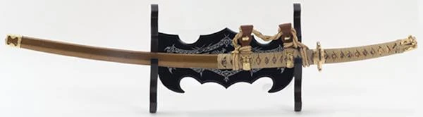 Sword wall display. Holds one sword. Features an oriental graphic. Dimensions are 15.25 in. by 11 in. by 3.25 in.