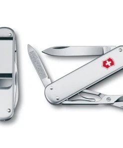 This version of the Victorinox Money Clip comes with polished Alox handles in silver. The scales are affixed with silver pins and bear the Victorinox emblem.