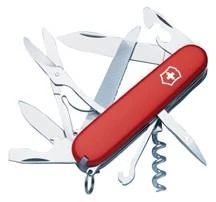 Features: Large & Small knife blades, Corkscrew, Can opener w/small screwdriver, Bottle opener w/large screwdriver & wire stripper, Reamer, Key ring, Tweezers & toothpick, Scissors, Multi purpose hook, Nail file w/nail cleaer, metal file, metal saw