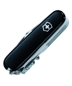 The SwissChamp is a 91mm model with a reasonable width of 33mm. This particular version of the pocket knife features black cellidor scales, but you can also get the SwissChamp in Ruby, Hardwood, Red, or Sapphire.